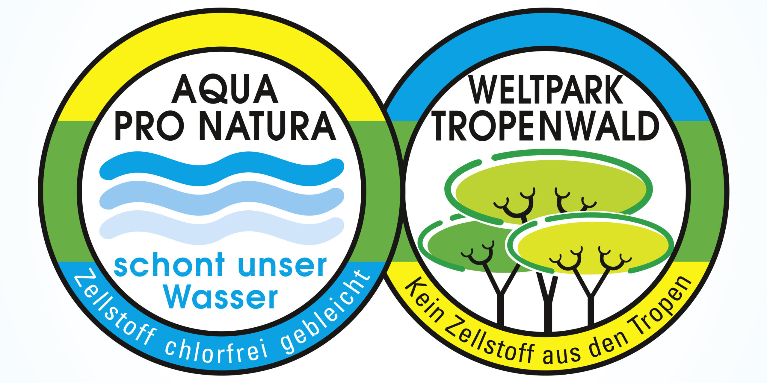 We designed the double logo ‘Aqua Pro Natura’ and ‘Weltpark Tropenwald’ on behalf of our client Herlitz. Symbols and seals of proven quality help customers to make an informed purchasing decision. In this case, with the aim of distinguishing the brand from Asian imports.